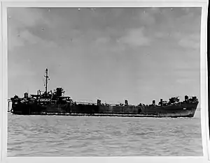 Following the war, she performed occupation duty in the Far East and saw service in China until mid-April 1946. She returned to the United States and was decommissioned on 23 July 1946, and struck from the Navy list on 28 August, that same year. On 10 December 1947, the ship was sold to The Learner Co., Oakland, California, for scrapping.[3]