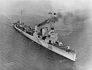USS Maddox (DD–168) was a Wickes-class destroyer in the United States Navy during World War I. She was later transferred to the Royal Navy as HMS Georgetown (I-40), to the Royal Canadian Navy as HMCS Georgetown, and then to the Soviet Navy as Doblestny (or Zhyostky; sources vary). She was the last "four piper" destroyer to be scrapped.
