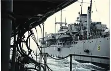 Mountrail returned to Long Beach in December and trained on the West Coast until sailing for Japan 28 November 1953. She sailed between the Philippines and Japan until August. when she Joined Operation Passage to Freedom, the massive evacuation of refugees from North to South Vietnam.[3]