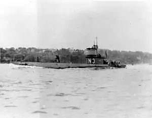 USS N-3 (SS-55) was a N-class coastal defense submarine of the United States Navy. Her keel was laid down on 31 July 1915 by the Seattle Construction and Drydock Company. She was launched on 21 February 1917 sponsored by Miss Bertha Coontz, daughter of the commandant of Puget Sound Navy Yard, Captain Robert Coontz, and commissioned on 26 September 1917 with Lieutenant William R. Munroe in command. N-3 was the last submarine constructed in Seattle.