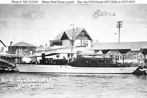 ![]() USS Ocoee (SP-1208) in port during World War I. | |