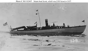 - Department of the Navy Naval Historical Center Online Library of Selected Images: Civilian Ships: Scout (American Steam Boat, 1900). Served as USS Scout (SP-114) in 1917