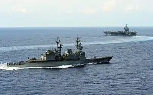 | Propulsion: | 4 × General Electric LM2500 gas turbines, 2 shafts, 80,000 shp (60 MW) |