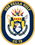 USS Vella Gulf (CG-72) is a Ticonderoga-class guided missile cruiser built for, and in active service with, the United States Navy. She is the second ship named for the Battle of Vella Gulf, a naval engagement in the Solomons campaign of World War II, the first being USS Vella Gulf (CVE-111) an escort carrier commissioned in 1945. She was laid down on 22 April 1991 at Pascagoula, Mississippi, by Litton Industries, Ingalls Shipbuilding Division; launched on 13 June 1992; sponsored by Mary A. McCauley, wife of Vice Admiral William F. McCauley (Ret.); and commissioned alongside Pier 12, Naval Operating Base (NOB) Norfolk, Virginia, on 18 September 1993.[1]