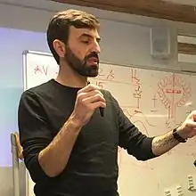 Ubi de Feo (born 1974, in Italy) is a Creative Technologist and educator.[1] In his off-time (mostly when doing the dishes) he thinks about ways to improve things or invent new ones. Curiosity drives everything in his life and work.[2] In 2007 de Feo began teaching programming, electronics and other things to whoever wants to learn, often developing his own methods to explain really complicated things in a more tangible, down-to-earth fashion. He does do not try to teach things he doesn’t thoroughly understand, which often leads him to learn entirely new subjects in order to explain them to himself and others.