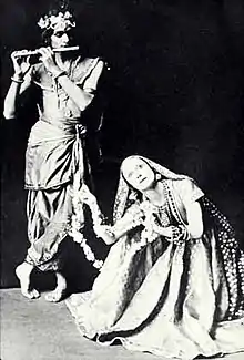 Uday Shankar (8 December 1900 – 26 September 1977) was an Indian dancer and choreographer, best known for creating a fusion style of dance, adapting European theatrical techniques to Indian classical dance, imbued with elements of Indian classical, folk, and tribal dance, which he later popularised in India, Europe, and the United States in 1920s and 1930s.[1][2][3][4][5] He was a pioneer of modern dance in India.