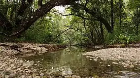 Ujung Kulon is the last known refuge for the critically endangered Javan rhinoceros after poachers killed the last remaining rhino in Cát Tiên National Park of Vietnam, where a small population of 10 or less remained in 2010. In Ujung Kulon the population has been estimated at 40-60 in the 1980s.[4] Within 2001-2010 there have been 14 rhino births identified using camera and video traps.[5] Based on recordings taken between February and October 2011, 35 rhinoceros have been identified, of which 22 were males and 13 females. Of these 7 were old, 18 adults, 5 youngsters, and 5 infant rhinos.[6] Increasing from previous years, in 2013 there were 8 calves which 3 of them were female and 50 teenage and adult which 20 of them were female identified using 120 video cameras functioning at night with moving sensor. It was accurate data, because every rhino has unique morphology as finger print, mainly skin wrinkles around the eyes.[7]