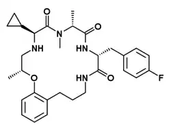 Ulimorelin (INN, USAN) (developmental code name TZP-101) is a drug with a modified cyclic peptide structure which acts as a selective agonist of the ghrelin/growth hormone secretagogue receptor (GHSR-1a)..[1] Unlike many related drugs, ulimorelin has little or no effect on growth hormone (GH) release in rats.[2] However, like ghrelin and other ghrelin agonists, ulimorelin does stimulate GH release with concomitant increases in insulin-like growth factor 1 (IGF-1) in humans.[3] It has been researched for enhancing gastrointestinal motility, especially in gastroparesis[4] and in aiding recovery of bowel function following gastrointestinal surgery, where opioid analgesic drugs used for post-operative pain relief may worsen existing constipation.[5][6][7][8] While ulimorelin has been shown to increase both upper and lower gastrointestinal motility in rats,[8] and showed promising results initially in humans,[4][6] it failed in pivotal clinical trials in post operative ileus.[7]
