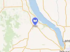 Ulysses Philomathic Library is a public library in the village of Trumansburg, New York which is located within the town of Ulysses. The town existed at the time the library was founded as a private association in 1811 but the village was not incorporated until 1872.[1][4] Philomathic means “love of learning”.[5] The library serves the town of 4,775 residents according to the 2000 census. Work began on the current Greek Revival and brick library building in June 2000.[6] The library is a member of the Finger Lakes Library System.[7]