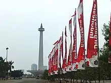 Umbul-umbul, also called rérontek or, archaically, tunggul,[1] are a type of flag or pennant made of a strip of cloth whose longer side is attached to a pole.[2] They are used in the traditional culture of Java and Bali, Indonesia, where they are carried in festivals[3] and serve other decorative purposes.