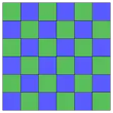 Tilings can also be self-dual. The square tiling, with Schläfli symbol {4,4}, is self-dual; shown here are two square tilings (red and black), dual to each other.