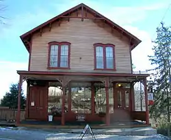 Union Hall is a historic commercial building located at North Salem, Westchester County, New York. It is impossible to trace its original owner and the date it was built due to omissions in the Land Records Office in White Plains. It was built around 1848 in the Italianate style. It is built into the side of a steep slope and has a two-story front facade and four stories at the rear. It is a rectangular, wood frame building sheathed in unpainted clapboard. The building once functioned as a store, meeting hall, stagecoach stop, and residence. Also on the property there was a contributing carriage barn.[2] However The Carriage Barn roof caved in due to heavy snows in January 1996 and was demolished in 2001. It is currently owned by Janis Menken.[3]