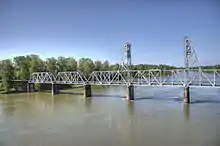 The Union Street Railroad Bridge is a vertical lift, Pratt through truss bridge that spans the Willamette River in Salem, Oregon, United States, built in 1912–13. It was last used by trains in the early 1990s and was sold for one dollar in 2003 to the City of Salem, which converted it to bicycle and pedestrian use in 2008–2009. It was added to the National Register of Historic Places in 2006.