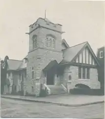The church has ties to several historic religious communities in Lancaster, notably St. James Episcopal Church (also in the Historic District) and the Lancaster Theological Seminary, but the Unitarian Universalist building is newer and represents the last era of generally acknowledged architectural distinction in the city.[3] Except for an addition built next door in 1972, the exterior of the church is largely unchanged from its appearance in 1909, when it was dedicated. It was designed by Lancaster's leading architect, Cassius Emlen Urban, but is an unusual example of his work.[4] Smaller than his other Lancaster churches, it follows the transitional Gothic style with Norman elements advocated for such churches by Ralph Adams Cram and Alexander Bourne.[5]