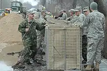 Some of the Corps of Engineers' civil works projects have been characterized in the press as being pork barrel or boondoggles such as the New Madrid Floodway Project and the New Orleans flood protection.[45][46] Projects have allegedly been justified based on flawed or manipulated analyses during the planning phase. Some projects are said to have created profound detrimental environmental effects or provided questionable economic benefit such as the Mississippi River–Gulf Outlet in southeast Louisiana.[47] Faulty design and substandard construction have been cited in the failure of levees in the wake of Hurricane Katrina that caused flooding of 80% of the city of New Orleans.