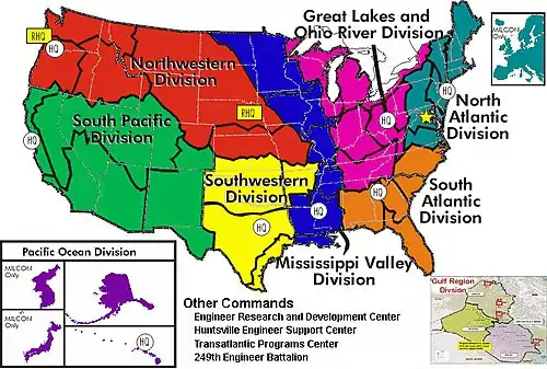 - "Map -- Headquarters U.S. Army Corps of Engineers". U.S. Army Corps of Engineers. Retrieved 27 April 2018.