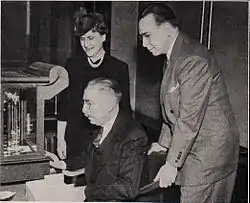 Mint Director Nellie Tayloe Ross (left) looks on as two members of the 1942 Assay Commission weigh a coin.