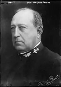 Despite the endorsement of Admiral Sims, the Navy Department initially rejected the British request.[6] Like other navies of the late-19th and early-20th centuries, the U.S. Navy rigidly adhered to the doctrine of Alfred Thayer Mahan, whose first tenet was that under no circumstances should a battle fleet be divided.[7] U.S. Chief of Naval Operations Admiral William S. Benson and Admiral Henry T. Mayo—Commander of the U.S. Atlantic Fleet—were particularly worried that if Britain fell, as developments at sea suggested it might, the U.S. Navy would be left to face the German High Seas Fleet completely on its own.[8]