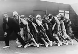 The men found other ways to keep busy besides sports. Throughout the year, every ship in the squadron produced theater productions, and motion pictures were shown whenever possible. Furthermore, leave was granted to the men on a frequent basis whenever the ships were in Rosyth for repairs.[64] On 4 July 1918, Admiral Beatty provided a special treat for the men of Battleship Division Nine by granting them a few days off from all drills and maneuvers in order to celebrate what he termed "this greatest of Liberty Days".[54]