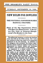 - "New Rules for Bowlers". Brooklyn Daily Eagle. Brooklyn, New York. September 10, 1895 – via Newspapers.com