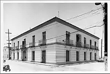 The building is a simple rectangle measuring 97 feet wide x 83 feet deep. The plan is typical of Spanish construction, with interconnected rooms, around the outside perimeter that also open to a central courtyard. There is a wide arched vehicular passage leading from the front through the courtyard to the rear exit from the building. The original courtyard has been partially closed in on the first floor only on each side of the passageway to create two additional rooms. Between the front rooms and the courtyard, a fine masonry staircase rises on the left side off the central passage. The second floor repeats the first-floor layout of perimeter rooms with later modifications, but includes the full extent of the original courtyard or patio in the center. Originally there may have been a roofed courtyard gallery for circulation around the courtyard. At present, there are two short modern gallery sections bridging between the quarry-tile-paved roofs of the infilled first-floor courtyard areas. At the head of the stairs is a large public lobby that opens to the courtyard and to the front of the building. There is also a small circular iron stair to the roof from the southeast corner of the second-floor courtyard.[8]