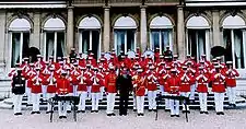 The United States Marine Drum & Bugle Corps is the drum and bugle corps of the United States Marine Corps. The D&B is now the only full-time active duty drum corps in the United States Armed Forces. As one of many United States military bands, the United States Marine Drum & Bugle Corps consists of 80 active-duty Marines dressed in ceremonial red and white uniforms. The D&B performs martial and popular music.[1]