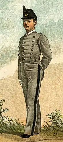 Besides the integration of southern-state and black cadets, the post-war academy also struggled with the issue of hazing. In its first 65 years, hazing was uncommon or non-existent beyond small pranks played upon the incoming freshmen, but took a harsher tone as Civil War veterans began to fill the incoming freshman classes. The upper class cadets saw it as their duty to "teach the plebes their manners."[45] Hazing at the academy entered the national spotlight with the death of former cadet Oscar L. Booz on 3 December 1900. Congressional hearings, which included testimony by cadet Douglas MacArthur, investigated his death and the pattern of freshmen's systemic hazing.[46] When MacArthur returned as superintendent, he made an effort to end the practice of hazing the incoming freshmen by placing Army sergeants in charge of training new cadets during freshman summer.[47] The practice of hazing continued on some levels well into the late 20th century, but is no longer allowed in the present day.[48]