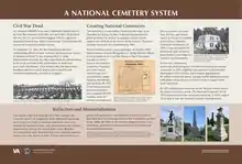The first national cemeteries were set up after the United States Civil War by Edmund Burke Whitman.[5] Congress passed a law to establish and protect national cemeteries in 1867.[6]