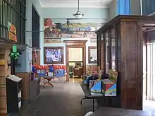 Interior with postmaster's window, and mural above