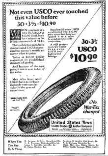 The company's long-lived advertisement slogan was "United States Tires are Good Tires."[3] One of Uniroyal's best known tires is the Tiger Paw introduced in the 1960s and included as original equipment for that decade's muscle cars such as the Pontiac GTO, which itself was promoted as The Tiger during its early years. Today, Uniroyal still uses the Tiger Paw brand name in its tire line.