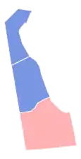 Biden's campaign had little and was given no chance of winning.[2] His sister, Valerie Biden Owen, managed his campaign (as she would his future campaigns) and other family members staffed it. The campaign relied upon handed-out newsprint position papers and meeting voters face-to-face;[3] the state's smallness and lack of a major media market made that approach feasible.[4] He did receive some help from the AFL–CIO and Democratic pollster Patrick Caddell.[1] His campaign focused on withdrawal from Vietnam; the environment; civil rights; mass transit; more equitable taxation; health care; the public's dissatisfaction with politics as usual,; and "change".[1][3] During the summer, he trailed by almost 30 percentage points,[1] but his energy level, his attractive young family, and his ability to connect with voters' emotions gave him an advantage over the ready-to-retire Boggs.[5] Biden won the November 7 election by 3,162 votes.[3]