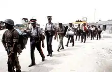 American forces remained in Grenada after combat operations finished in December as part of Operation Island Breeze. Elements remaining performed security missions and assisted members of the Caribbean Peacekeeping Force and the Royal Grenadian Police Force, including military police, special forces, and a specialized intelligence detachment. The Point Salines International Airport was renamed in honor of Prime Minister Maurice Bishop on 29 May 2009, his 65th birthday.[20][21] Hundreds of Grenadians turned out to commemorate the event. Prime Minister Tillman Thomas gave the keynote speech and referred to the renaming as an act of the Grenadian people coming home to themselves.[66] He also hoped that it would help bring closure to a chapter of denial in Grenada's history.