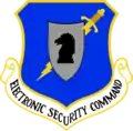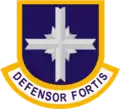 In 1957, the Strategic Air Command (CMD) Elite Guard was the first Air Force unit authorized to wear berets. The first beret flash worn on the unit's navy-blue beret was a metal full-color replica of the Strategic Air CMD Shield.[60][61] In 1966/67, the newly formed 1041st Security Police SQN was authorized to wear a different shade of dark-blue beret and used a depiction of a falcon carrying a pair of lightning bolts on a light-blue cloth patch as their beret flash.[62][59][63] In 1976, the Air Force approved the navy-blue beret, worn by Strategic Air CMD's Elite Guard and Air Force Combat Control Teams, as the official uniform item for all Air Force police and security forces.[62][64] The beret flash used on these berets was a metal full-color replica of the airman's major CMD shield.[65][58] In 1997, the Air Force stood up the security forces AFSC and honored the heraldry of the 1041st Security Police SQN by creating a new cloth beret flash for all security forces airman and NCOs that depict the 1041st's falcon over an airfield with the motto "Defensor Fortis" (defenders of the force) embroidered on a scroll at its base.[2][62] Security forces officers wear the same basic beret flash minus the embroidered falcon and airfield and in its place attach their polished metal rank insignia.[2]