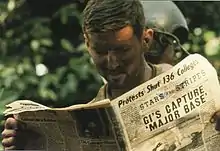 The highly-dangerous task of reporting with the PAVN/VC in the South was left to Wilfred Burchett, an Australian who had begun reporting on the war in 1963. He freelanced for the Japanese Mainichi group, the British communist daily The Morning Star, and the American National Guardian. Burchett made no pretense of his communist sympathies, but his reporting of communist schools, arsenals, hospitals, administrative structure, and logistics made what Phillip Knightley called "intriguing reading."[42] Because he reported from the communist side, Burchett was regarded by many in Australia as a traitor and was persona non grata with the Australian government, but he also possessed extraordinary information.[43] He was later joined by Madeleine Riffaud, of the French communist newspaper L'Humanité.