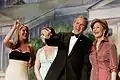 President George W. Bush points out members of the audience to First Lady Laura Bush during the "Black Tie and Boots Inaugural Ball" in Washington, D.C held on January 19, 2005.