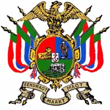 On 17 January 1852, the United Kingdom, ruler of the Cape Colony, approved the independence of the South African Republic in the Sand River Convention. "Eendragt maakt magt" was the motto on the new state's shield, and in 1888 it decided it should only use high Dutch (not Afrikaans) as its only official language. Rendered in Latin, the motto of the Union of South Africa from 1910 until 1961 was "Ex Unitate Vires" ("Out of Unity, Strength"). After 1961, as the Republic of South Africa, the motto was rendered on coins in both Afrikaans (as "Eendrag maak mag") and in English (as "Unity is Strength").[16] The motto was changed in 2000 to "ǃke e: ǀxarra ǁke", which is "Unity in Diversity" written in ǀXam.