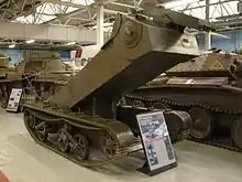The Universal Carrier, also known as the Bren Gun Carrier and sometimes simply the Bren Carrier from the light machine gun armament,[3] is a common name describing a family of light armoured tracked vehicles built by Vickers-Armstrongs and other companies.
