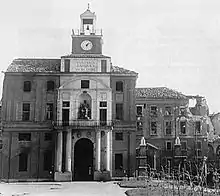 The Cattolica was partially destroyed by bombing on August 15–16, 1943, including several classrooms, an administration building, the office building, a cloister by Bramante, an ancient staircase, the hall of honour, and some colleges. The reconstruction work began immediately, moved by the words of Agostino Gemelli "rise again more beautiful and bigger than before".[10]