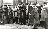 During World War II, Ezio Franceschini, who supported the Resistance, organized meetings of the Freedom Volunteer Corps (coordination structure of the partisans) in the university. Towards the end of the war, in 1944, the professor of medieval Latin letters hid, in the basement of Cattolica, a box containing documents and books on the Resistance and FRAMA group founded by Ezio Franceschini. The SS rummaged everywhere in UCSC to find those cards but, buried among the bones of fifty skeletons dead from an epidemic of plague in the sixteenth century, they remained there and emerged only after the war.[9]