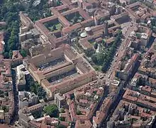 The main section of Gemelli consists of the following buildings: monumental with cloister by Bramante, offices, Gregorianum, Antonianum, Via Lanzone 18, Ambrosianum, Franciscanum, and Domenicanum.