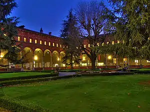 The Catholic University of Brescia has four facilities distributed in the historic centre of the city. The historic headquarters is located at Via Trieste 17, in the Palazzo Martinengo Cesaresco dell'Aquilone. These were added to the sixteenth-century complex of the Good Shepherd located in Via dei Musei 41, which accommodates classrooms and laboratories for the Faculty of Mathematical, Physical and Natural Sciences. Other venues are located in Contrada Santa Croce 17, Via Aleardo Aleardi 12, and Via San Martino della Battaglia 11, for a total of approximately 23,464 square meters. Some projects in 2007 included the extension of the University with a new headquarters in the northern district of Brescia, for a total of about 20,000 m² of additional space.[19] This includes 25 new classrooms, 16 laboratories, a library, a canteen, study halls, ample spaces for socialization and sports activities as well as offices for administrative and teaching staff.[20][21] The new complex should be available by the end of 2018 and will host the Faculty of Mathematics and Physics as well as other graduate courses.[22]