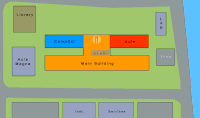 The main building consists of four floors containing: Communications and Economics offices (1-3), the Executive Centre, four computer labs (1), classrooms (1-3), the cafeteria (2)(Q1-2007), and third-floor auditorium (3)(Q3-2007). The library is four floors tall. The LAB has 5 floors, in great part occupied by the Institute of Computational Sciences, and the rest by other Communication Sciences and Informatics departments.