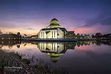 The new academic complex was designed by Foster and Partners, and the first-phase construction was completed in 2004.[8] The design received an Aga Khan Award for Architecture in 2007. The overall layout of the new academic complex is in the shape of a five-pointed star made up by five semicircles. The new academic complex was officially opened by the former chairman of PETRONAS and ITPSB Board, YBhg Tun Azizan Zainul Abidin. Currently, almost all of the academic activities have been shifted to the new campus. A ‘star concept’ diagram, overlaying vision, site, programme and quality, was used as a template to zone various facilities and initiate the preliminary design,[8]