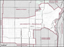 ![]() University-Rosedale in relation to the other Toronto ridings (2013 boundaries) | |||