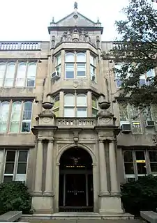 The building which houses University Laboratory High School was constructed from 1917 through 1918 and was designed by Holabird & Roche in the Late Gothic Revival style, with James M. White as the supervising architect. An earlier design for an "H"-shaped structure with two wings had been rejected in 1914, and it was not until May 1916 that the go-ahead was given to begin construction on the new design, which was estimated to cost $143,500.[27]