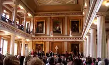 Today the university consists of 13 faculties and around 31,600[4] students are enrolled. More than 400 professors and 4,000 academic staff work at the university, assisted by a technical and administrative staff of over 7,000. The post-war expansion of the university led to the establishment of a new, modern "university quarter" in the north of the city. The architecture of the old university can still be seen in the Auditorium Maximum (1826/1865) and the Great Hall (1835/1837) at Wilhelmsplatz.