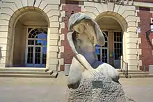 The University Library came into being before the University with which it is affiliated, as the University board considered it essential that students and faculty would have books waiting to greet them when the University opened its doors.[1] However, this earliest collection was very small and did not yet have its own library building. As a result, the University Library has moved as it has grown throughout its history, a trend that continues to this day. While its collections had previously resided elsewhere, Altgeld Hall (at the time known as Library Hall[2]) was the first building built specifically to house the University's library.[3] Today, Altgeld Hall is home to the University's Math Department; the University Library moved in the 1920s to what is now called the Main Library.