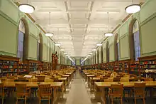 The earliest Library collection consisted of around one thousand items.[4] The collection remained small for some time, and in the early 1900s the Library was smaller than those of other large public libraries, as well as private institutions such as the University of Chicago.[5] This would, however, quickly change. The Library underwent a period of tremendous growth from the mid-1930s until 1940, becoming, by some measures, the country's fifth-largest library.[6] A strong library collection became increasingly important to the University's standing and to its retention of students,[7] as well as to the implementation of a successful graduate school program at the University.[8]