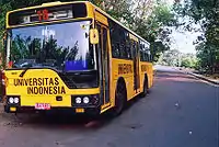 Campus buses are available for student transportation at the Depok campus for free. Locals call them "Bikun", shortened word of "Bis Kuning" or "yellow bus," as the buses are mostly that color. In 2005, Universitas Indonesia had a total of 20 campus buses. They serve regular routes in the campus area from Monday to Friday from 7:00 AM to 9:00 PM and Saturday from 7:00 AM to 2:00 PM.