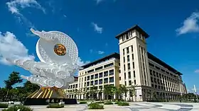 In 2009, the National People's Congress Standing Committee of China officially adopted a decision that authorised the Macao SAR to exercise jurisdiction over the new UM campus located on Hengqin Island, Guangdong province.[5] On 20 December 2009, then Chinese President and General Secretary of the Communist Party Hu Jintao officiated at the groundbreaking ceremony for the new campus. In early 2013 the Macau Legislative Assembly passed Law 3/2013 providing for the application of Macau Law in the campus effective on opening day.[6] On 5 November, then Vice-Premier of the State Council Wang Yang officiated at the new campus inauguration ceremony. In the 2014/2015 academic year, UM began to conduct all classes on the new and modern campus.